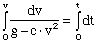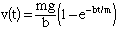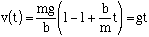Ponder, for a moment, the RHS of the above equation. Initially the velocity is zero so the RHS is just the mass (m) times the gravitational acceleration (g). However, the bv term starts growing and eventually cancels the mg term at which time the net force or acceleration is zero. The velocity no longer changes and we've reached terminal velocity. The value of this terminal velocity is: