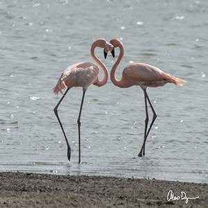 Our morning dive was at Te Amo Beach. The viz was pretty good and it was also sunny. We came upon a green turtle and the photo at the extreme right shows some grunts. Joe Pilarz invited us to join him for lunch at the Sorobon, so we spent most of the rest of the day there and then driving to Lac Bay. We got some good photos of the area and of birds. The birds below include (in order of appearance) a frigate, royal tern, flamingos and a heron. The frigate and tern were going after fish scraps from fishing boats.
