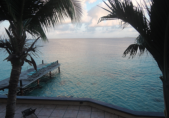 The day started off with the rising Sun casting a warm red glow on the sea looking out west from our balcony. After breakfast we headed out for our first dive at Something Special. The goal was to find the Frogfish talked about on Dive Friends Facebook page. We were parked at the Something Special site getting our gear together when a fellow, Peter, from Massachusetts pullled nearby and also started getting ready for a dive. He told us he had seen us getting our tanks at the Dive Friends shop and we talked about finding the Frogfish. Linda and I entered the water as Peter was finishing his preps. We didn't have much luck finding our target using the hints posted on the Dive Friends site but we ran into Peter, underwater, who led us to the Frogfish. What a treat. In our 300 or so Bonaire dives we only saw a Frogfish one other time in an early dive and that one was stationary. This one moved around. I got some good photos and Linda put together an awesome video.