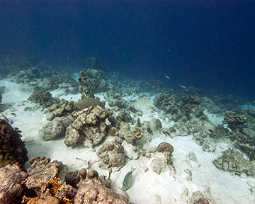 We had two dives today - morning at Te Amo Beach and the afternoon in front of the Bellafonte. At Te Amo we saw the Seahorse. I transported my Seahorse photo to another photo of a Parrotfish - thanks to Photoshop. Also shown is a landscape of the Te Amo site. Very early into the afternoon dive we encoutered a very large Rainbow Parrotfish.