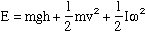 The total energy is the sum of the PE + translational KE + rotational KE. This is: