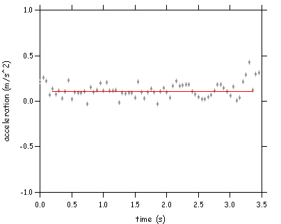 From the above fit the slope is 0.11242. Now we show this value on the plot of accelertaion vs time: