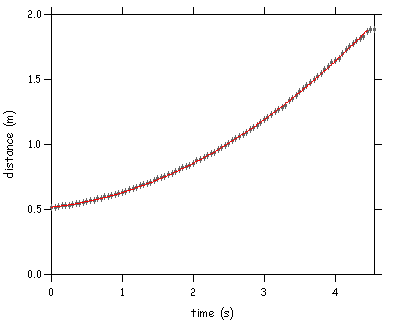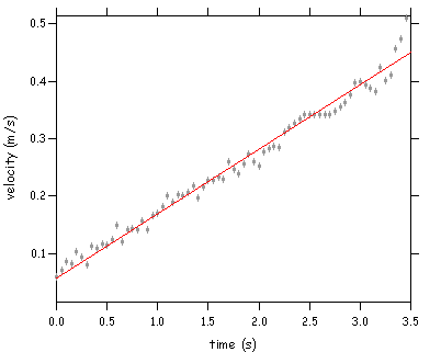 For the above fit the coefficient of the quadratic term is 0.05554. Now follows velocity vs time:
