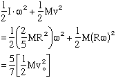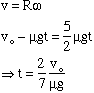 so the center of mass velocity decreases with time and the angular velocity increases (from zero) with time and when: