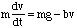 where v is velocity. We'll be dealing with motion in one dimension with down being positive. At the instant the object is released, only the force of gravity acts on the body: